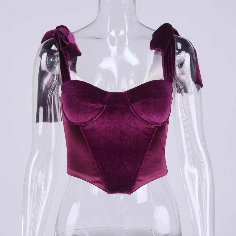 Un clasic distinctiv, de zi cu zi. Acest top corset bustier din catifea este rafinat și elegant, dar cu o versatilitate jucăușă.